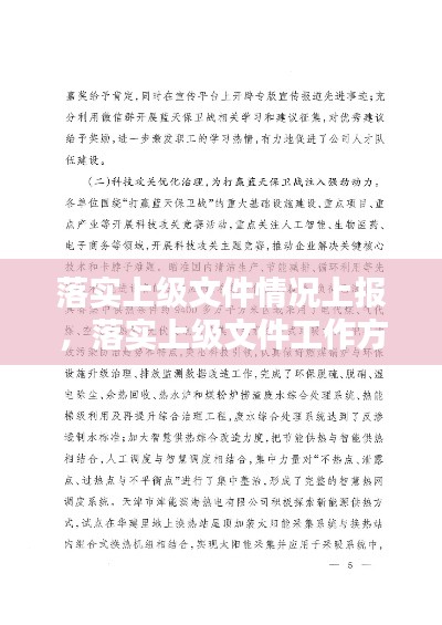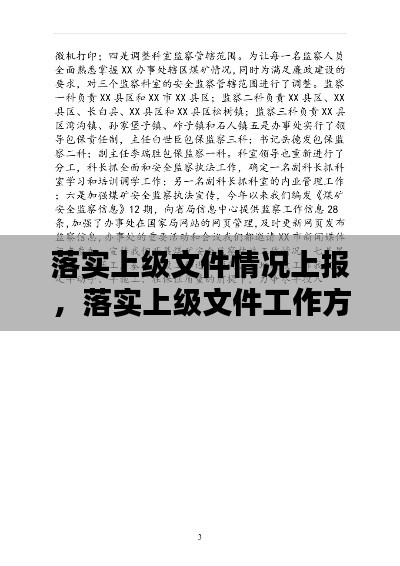 落实上级文件情况上报工作是确保文件精神得到有效贯彻的重要环节。各单位要高度重视,严格按照文件要求,认真组织落实,确保各项工作取得实效。同时,要加强沟通交流,及时向上级报告工作进展,争取上级支持。通过共同努力,为实现我国XXX工作的目标任务提供有力保障。