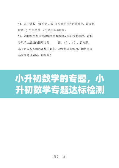 小升初数学是小学生从小学数学过渡到初中数学的重要阶段。这一阶段的数学学习不仅是对小学数学知识的巩固,更是为初中数学打下坚实基础的关键时期。小升初数学的专题涵盖了多个方面,包括基础知识、应用题、几何图形、数据统计等。