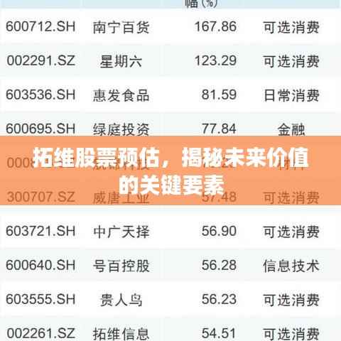 随着科技的不断发展和市场的日益繁荣,股票投资成为了众多投资者关注的焦点,在众多股票中,拓维信息(股票代码:XXXX)以其独特的行业地位和强大的发展潜力,吸引了广大投资者的关注,本文将围绕拓维股票的预估,探讨其未来的价值及投资潜力。