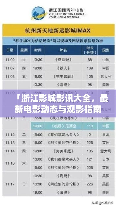 在百度搜索结果中,我们可以找到浙江影城的官方网站,在官网上,观众可以查询到各分店的影讯,包括影片名称、上映时间、放映厅、票价等信息,还可以了解到影城的优惠活动,如优惠券、折扣信息等。