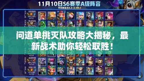 本文为大家带来了最新的问道单挑灭队攻略,包括队伍配置、战术策略、装备选择、操作技巧和注意事项等方面,希望本文能对大家在问道游戏中取得胜利有所帮助,祝愿大家在问道游戏中取得更好的成绩!