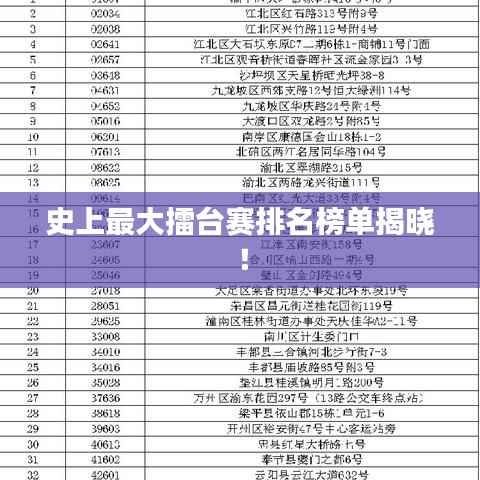 擂台赛,历来是热血与激情的碰撞场,是英勇与斗志的展示台,每一次挥拳,每一次较量,都让人热血沸腾,就让我们揭开史上最大擂台比赛的排名,看看那些英勇斗士们的辉煌战绩。