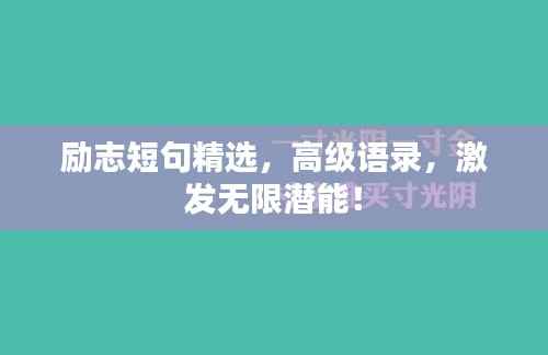 十、成功需要努力 ,努力需要坚持 ,坚持就是胜利 。 十一、只要路是对的 ,就不怕路远 。 十二、成功的秘诀在于对目标的不懈追求 。 十三、风雨过后的彩虹最美 。 十四 、世上最重要的不是眼前的苟且 ,还有远方的诗和田野 。 十五 、人生没有彩排 ,每天都是现场直播 。 十六 、只要努力 ,一切皆有可能 。 十七 、不忘初心 ,方得始终 。 十八 、奋斗的人生最美丽 ,十九 、成功是百分之九十九的努力加上百分之一的灵感 ,二十 、每一个成功者都有一个开始 ,勇于开始 ,才能找到成功的路 ,二十一句激励人心的语录短句:一、生命不止 ,奋斗不息 ,二 、爱拼才会赢 ,三 、今日事今日毕 ,四 、一分耕耘一分收获 ,五 、用行动证明一切 ,六 、不怕慢 ,就怕站 ,七 、只要心中有梦 ,就有无限可能 ,八 、相信自己 ,相信伙伴 ,九 、团结一心 ,其利断金 ,十 、用心血铸就辉煌的明天 ,十一 、成功源于不懈的努力 ,十二 、要成功先发疯 ,头脑简单向前冲 ,十三 、用行动成就梦想 ,用激情点燃生命之火 ,十四 、成功路上并不拥挤 ,坚持就是胜利 ,十五 、用心做事 ,诚信为人 ,十六 、脚踏实地 ,眼观星辰 ,十七 、拼搏进取 ,勇创辉煌 ,十八 、天道酬勤 ,厚积薄发 ,十九 、永不言弃 ,勇往直前 ,二十 、相信自己 ,你就是最棒的 ,二十一句激励自己的语录短句可以让你在人生的道路上不断前行 ,不断超越自我 ,实现自己的梦想和目标!