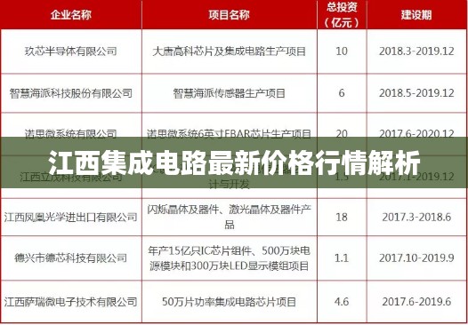 随着科技的飞速发展,集成电路已成为现代电子产品的核心部件,江西作为我国的集成电路产业重要发展地区之一,其价格行情对于行业内外人士来说具有极大的关注度,本文将详细分析江西集成电路价格行情,探讨其影响因素及未来趋势。