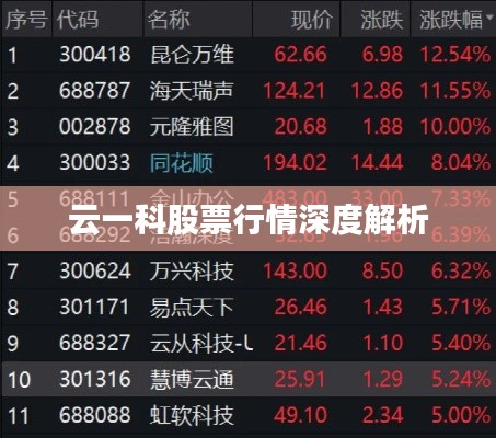 随着信息技术的迅猛发展,云计算成为当今科技领域的热门话题,作为云计算领域的领军企业,云一科股票备受投资者关注,本文将分析云一科股票行情,为投资者提供有价值的参考信息。
