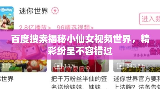 当我们想要寻找特定内容时,百度搜索就像一位贴心的向导,为我们指引方向,只需在搜索框输入相关关键词,如“小仙女视频在线”,便能瞬间找到大量相关资源,百度搜索的便捷性、准确性,使得我们可以轻松遨游在视频的海洋中。