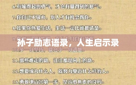 身为现代人,我们常常在繁忙的生活与工作中迷失方向,追求梦想的道路上难免会遇到挫折与困难,我们需要一些励志的话语来鼓舞士气,激发内心的力量,孙子的一些励志语录,不仅对于古代人们有着深远的影响,对于现代人也同样具有启示意义,在此,我将结合这些语录,分享一些关于人生的感悟。